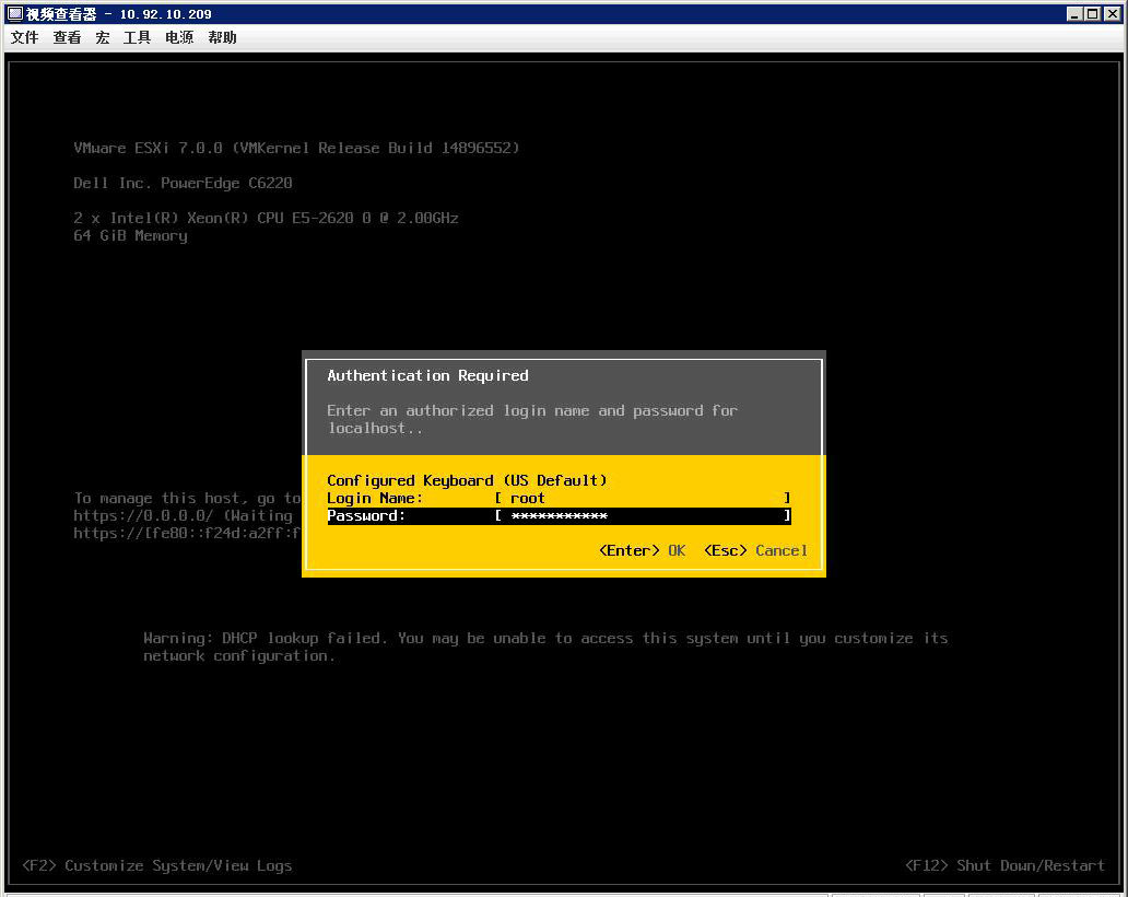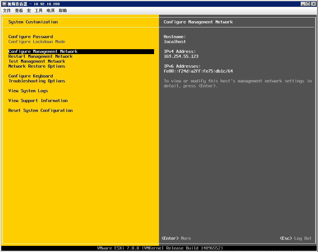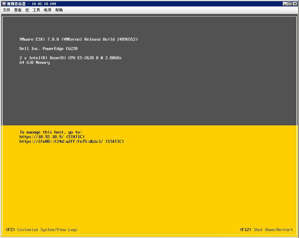 14、服务器重启完成后,进入VMware ESXi 7.0正式界面