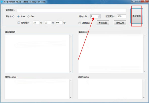 5、可以设置提交的次数,自动请求的时候可以多设置几次请求提交;