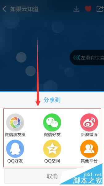 5、接着我们点击分享按钮后,会出现一些我们可以分享歌曲的平台,有微信,微博等等很多平台,我们选择自己想分享的某个平台。