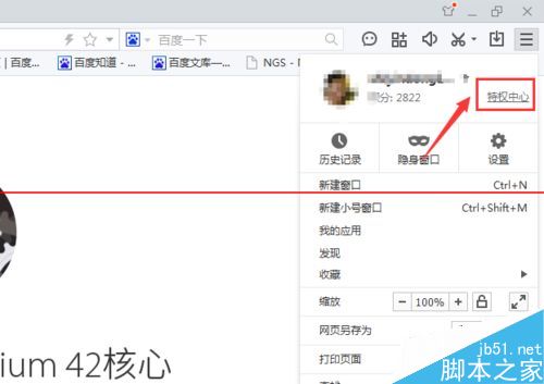 1、至于如何获取百度浏览器的积分,下边就不多说了,之前的经验中已经写过,今天来说说如何兑换爱奇艺VIP,首先登陆特权中心。