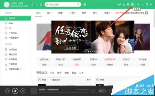 2、在打开的QQ音乐程序窗口,点击工具栏中的“主菜单”按钮图标。如图所示;