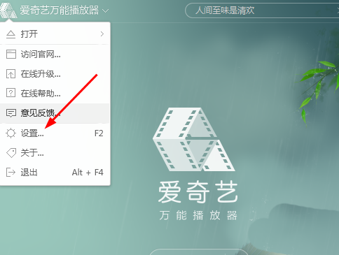 2、然后打开爱奇艺万能播放器软件的界面,点击个人中心,选择设置,如图所示