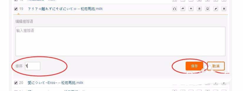 8、如果点击×前面一个铅笔的符号,就是编辑的意思,可以编辑的有推荐语或者是歌单内歌曲的排序。