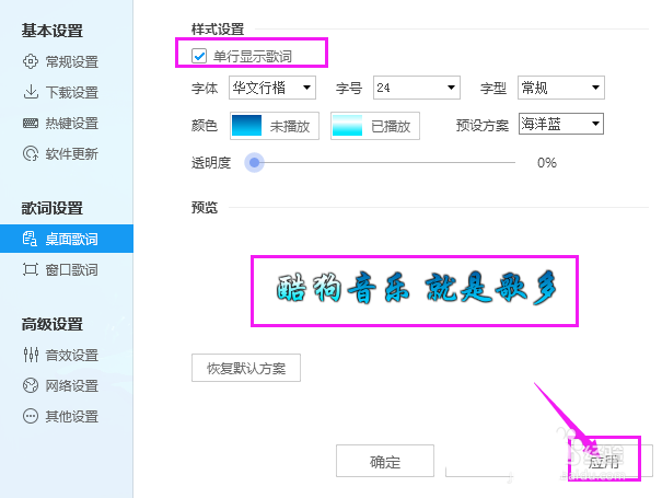 以上就是酷狗音乐设置歌词单行显示的教程,希望大家喜欢,请继续关注脚本之家。