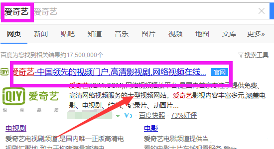 1、百度上搜索“爱奇艺”,点击搜索出来的第一个爱奇艺官方网站。