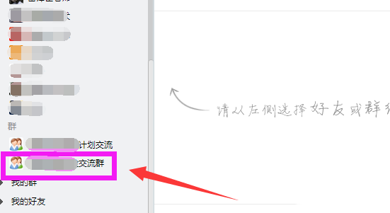 5、在新窗口中,左侧列表中会显示最近联系的好友和QQ群,如果要发给朋友,可以点击该好友,发给QQ群就点击群,如图我点击了一个QQ群。