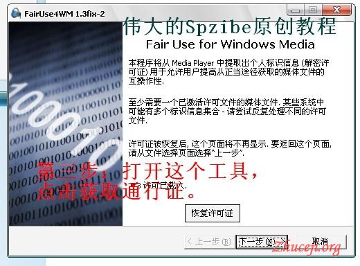 大家碰到RMVB播放时所要播放许可证时,把文件的后缀名字改为 .wmv 再破解!补充:当破解几次后,不出现第三步窗口,而是直接出现第四步窗口时,可以直接把文件拖入破解窗口,然后直接点下一步开始破解,而不用进入到上一步恢复许可证!目前WMV文件越来越狗,有时候要播放密码,现在我把经验给大家分享一下,感谢大家支持!密码一般为:123456 或者 23456