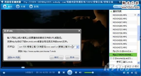 迅雷看看播放器新版本支持互联网视频播放功能,只要直接输入其URL地址即可(如图1)。同时,还可以直接打开视频文件的种子,如果种子文件中包含有多个视频文件,则会自动将其中的视频添加到播放列表中,默认播放第一个视频(如图2)。