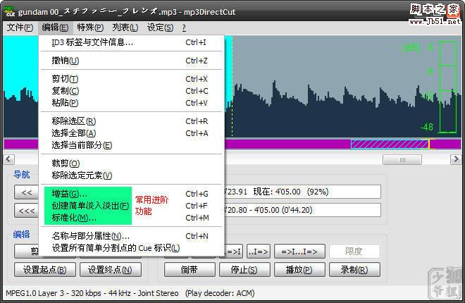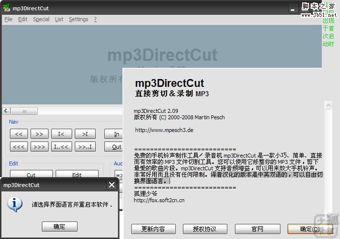 免费的手机铃声制作工具/录音机 mp3DirectCut 汉化版 是一款小巧、简单、直接而有效率的 MP3 文件切割工具。您可以使用它修整你的 MP3 文件,剪下最爱的歌曲片段。mp3DirectCut 支持音频增益,可以用来放大手机铃声。非常好用而且没有任何限制。笔者将借本教程演示使用mp3DirectCut 汉化版制作手机铃声(提取某歌曲的高潮部分)的一般流程,此过程对最终用户没有任何特别的技术与经验要求,非常简便快捷、易学易用:)