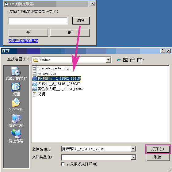xv视频提取器点击浏览添加xv文件,(注意:这里操作之前一定要把视频看完,也就是要缓存完,否则视频就不完全),如图:
