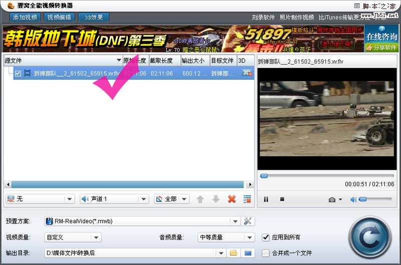 xv文件拆弹部队__2_61502_65915视频提取成功, 我们再运行狸窝全能视频转换器添加提取的视频flv格式的,如图: