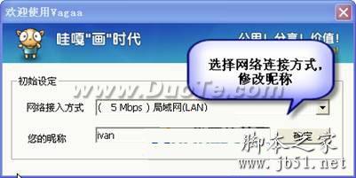 第一次运行,会弹出设置网络设置向导,在向导的带领下选择网络连接方式和改变自己的昵称(如图3所示)。