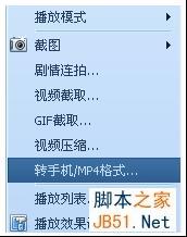 1、播放视频时,用鼠标右键点击视频区,选择【转手机/MP4格式...】