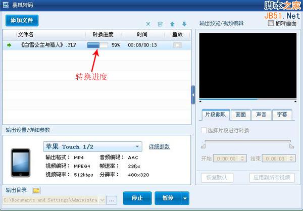当转换完成之后,转换进度条会显示100%,暴风转码转换完成格式之后,不会自动弹出存储目录,需要自行找到存储目录再打开。