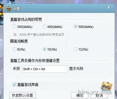 1、游戏直播带宽分为300K、400K、500K码率,码率越高对网络上行要求越高(相同帧数条件下码率越高画面越清晰)
