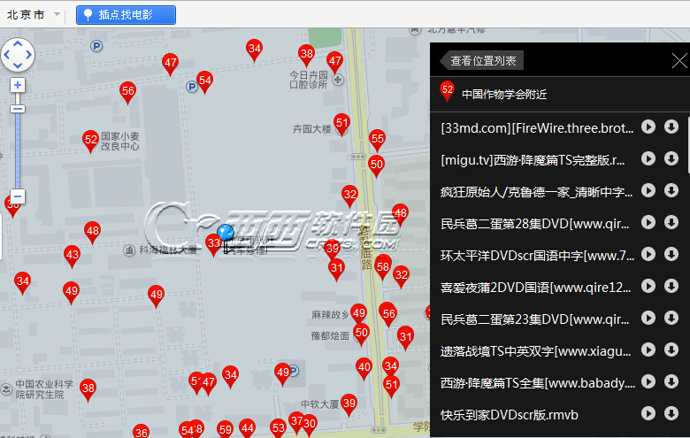 首先选择一个城市,然后点击插点找电影在选择的城市地图上标记一个点,我们就可以看到这个城市各个区用户正在观看的视频数量了。
