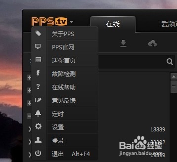 在左上端点击倒三角,也就是pps.tv边上的标志。