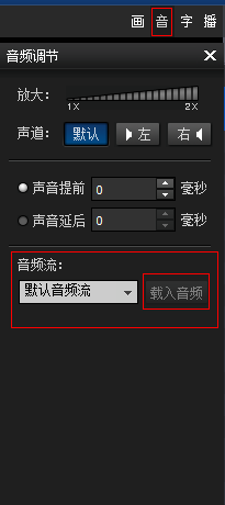 如果是影片具有多种音频选择的情况下,您可以点击播放区上方浮动控制栏右侧的“音”字,选择音频流,同时也可载入外挂音频流。