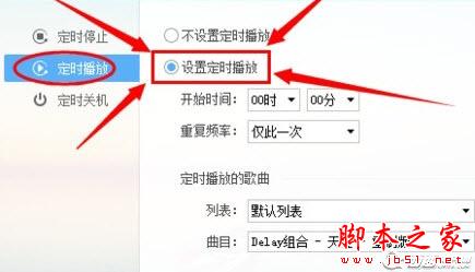 2.在设置窗口中选择“定时播放”项,起初是默认为了“不设置定时播放”。现需选择“设置定时播放”。