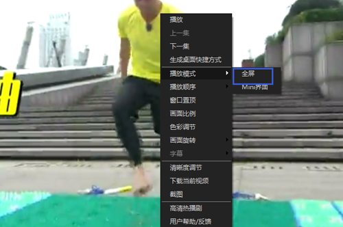 1、默认,搜狐视频播放器是以标准界面进行播放视频的,鼠标双击播放窗口,或者鼠标右键播放窗口,选择“播放模式”-“全屏”,则可切换到全屏播放。在全屏播放模式下,按下键盘上的Esc键,或者鼠标右键播放窗口,选择“播放模式”-“还原”,则可恢复标准界面播放。