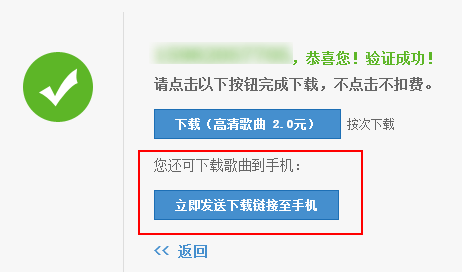 在手机收到的短信中点击wap链接,下载歌曲至手机。