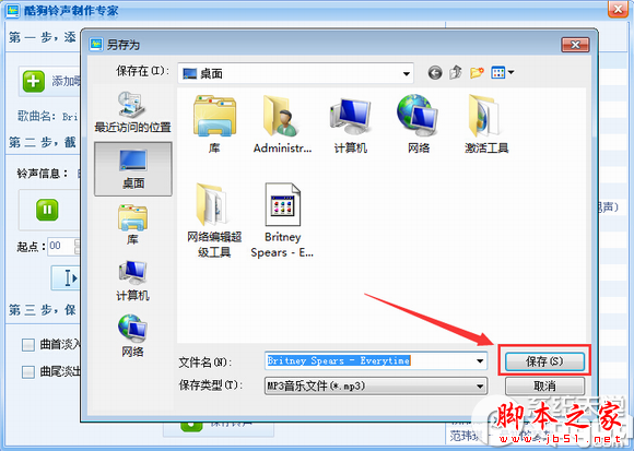 3.设置好,试听没有问题了,就可以保存了。点击最上方的保存铃声,保存到本地,当然你也可以保存到的空间,我选择保存到本地为例介绍,点击即可,如图。