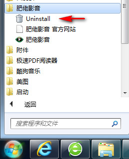 安装肥佬影音之后,在开始菜单会有个安装目录,打开之后就可以看到官方卸载程序