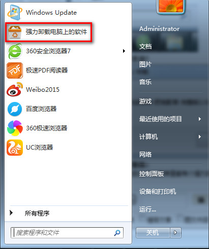 只要安装了软件管家的朋友在开始菜单里都有个强力卸载软件