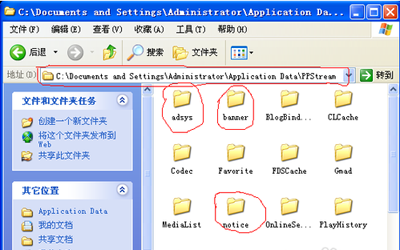 1、首先需要找到C:Documentsand Settings用户名(如:Administrator)ApplicationDataPPStream文件夹下的三个文件夹adsys、banner和notice文件夹。