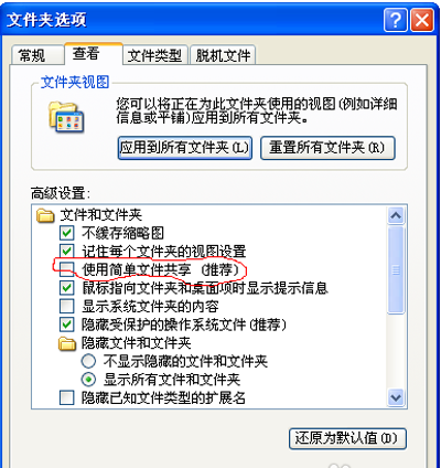 4、如果右键单击文件夹在属性中看不到“安全”选项卡,可以打开“我的电脑” => 工具 => 文件夹选项 => 在“文件夹选项”对话框中选择“查看” => 将“使用简单共享”的勾去掉 => 确定,便可以看到“安全”选项卡了。