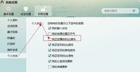 5、在个人状态里面,将我正在播放的音乐前面的勾(√)去掉