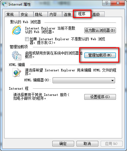3、恢复默认浏览器的方法“工具”→Internet选项→程序→最下面有个“检查Internet Explorer是否为默认的浏览器”把前面的钩选上,确定。