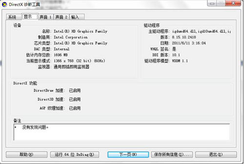 4、下方DirectX功能若为“已禁用”,则需重新安装显卡驱动或更新DirectX版本; 点此下载更新