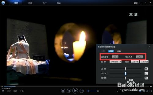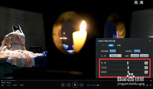 5、如果还是不行,就只有通过调节视频的 亮度 对比度 饱和度 ,这样调整后对视频画质是有明显的效果的。大家可以试一试。