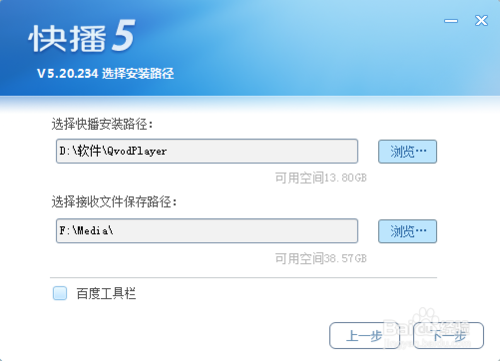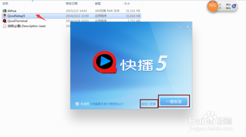 2、双击QvodSetup5开始安装,有自定义安装和快速安装,大家随意选择一种方式安装,但一定要记住你安装的文件夹位置。后面会用到。