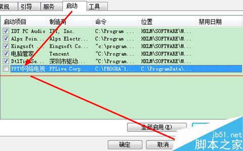 5、去掉【PPTV网络电视】前面的勾(不让它自动启动),接着按【应用】,搞定了,问题解决了,如图
