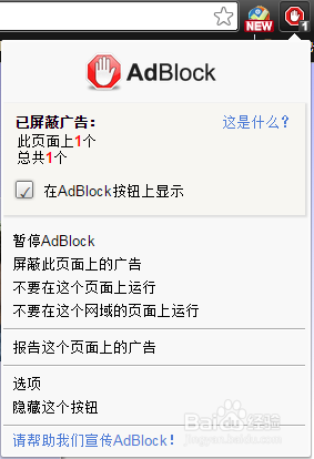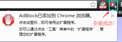 机子性能良好的话,10秒内就能弯成插件的加载!然后你就会看到右上角多了一个手形小图标,没错,这正是AdBlock的插件图标!这时,插件已经正在运作中!