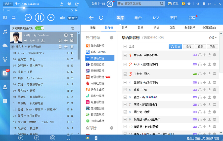 酷狗音乐最新版新增了临时播功能,优先用临时播试听功能开启后在播放歌曲时就可以随意挑歌无痕试听并切换播放列表,非常方便。下面教大家使用方法。