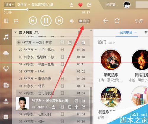 2、更新成功酷狗音乐后,我们点击打开酷狗音乐,然后点击音量设置上的音效,如图所示