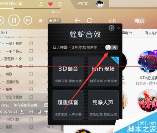 3、HIFI现场——这种蝰蛇音效只在戴上耳机的情况下开启,个人使用这种音效的体会是,没有3D丽音那么重的立体效果,但是这种效果却恰恰合适,使人听后非常舒服,值得推荐!