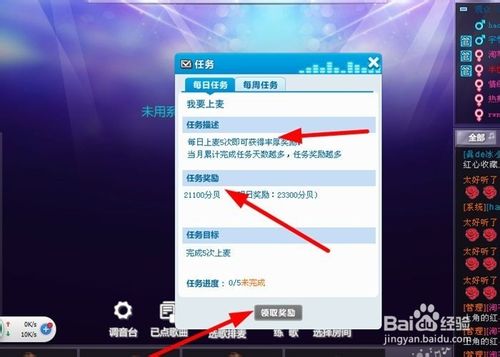 我们可以看那个说明,每天唱五首歌,可以领取点分贝,如果可以领取的时候,那个箭头所指的图标,会闪光,点击就可以领取了!