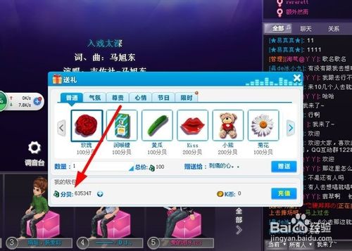 最后,点击送礼按键,看看我们的分贝是不是多了,不少了呢!