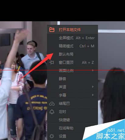 6、这个时候我们鼠标右键点击我们正在观看的视频,然后在弹出的菜单栏里有一个默认布局我们点击。