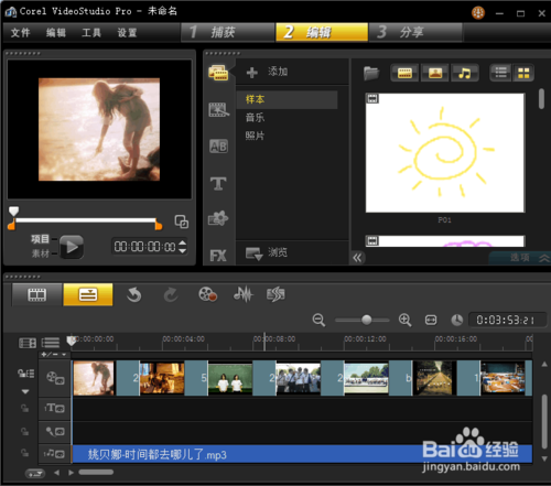 1、打开制作好的视频雏形,即只有照片和音乐,如图示: