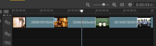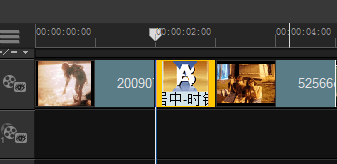 3、用鼠标拖动该时钟效果到视频轨的图片之间就实现了图片和图片之间的切换。