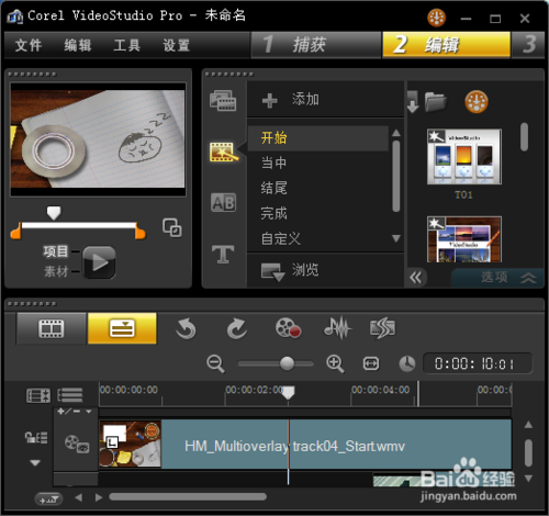 2、在即时项目的开始里面选择一个自己喜欢的模板用鼠标拖动到轨道上面。