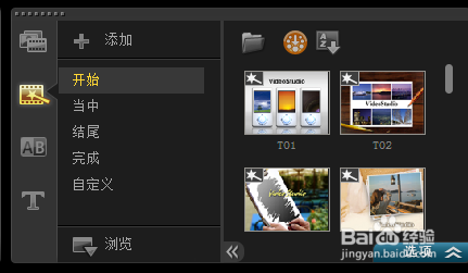 1、打开会声会影选择面板的即使项目,如图。