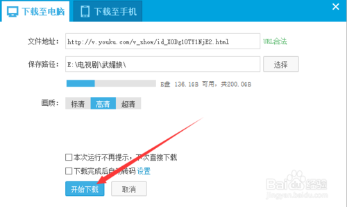 7、点击”开始下载“,这样你喜欢的视频就下载下来了
