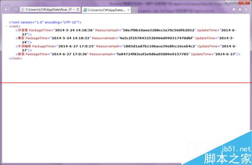 以邓丽君为例:<邓丽君 PackageTime="2014-5-24 14:18:36" ResourceHash="58e7f8b10aee3288cc1e70c560f62052" UpdateTime="2014-6-27"/>括号里的邓丽君是歌手名称,后面的“ResourceHash="58e7f8b10aee3288cc1e70c560f62052"”(不包含最外面的引号)是歌手写真图片保存的文件名(即58e7f8b10aee3288cc1e70c560f62052)。