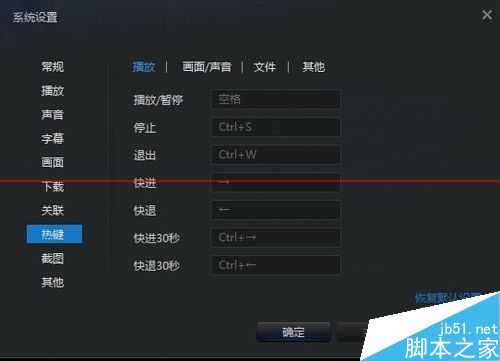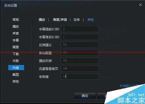 3、缺省进入的是热键下的播放热键设置,可以看一下哪些键位已经被使用,鼠标选择其它菜单